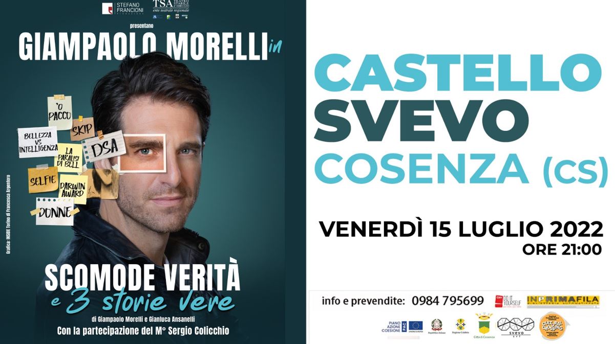 Al Castello Svevo Giampaolo Morelli con la commedia “101 scomode verità e 3 storie vere”