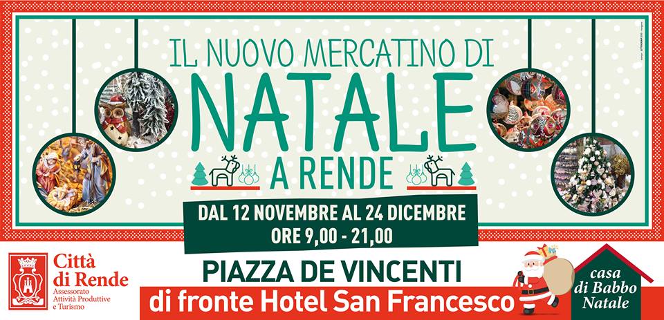Il nuovo mercatino di Natale a Rende troverà ospitalità in piazza De Vincenti, di fronte l’Hotel San Francesco.