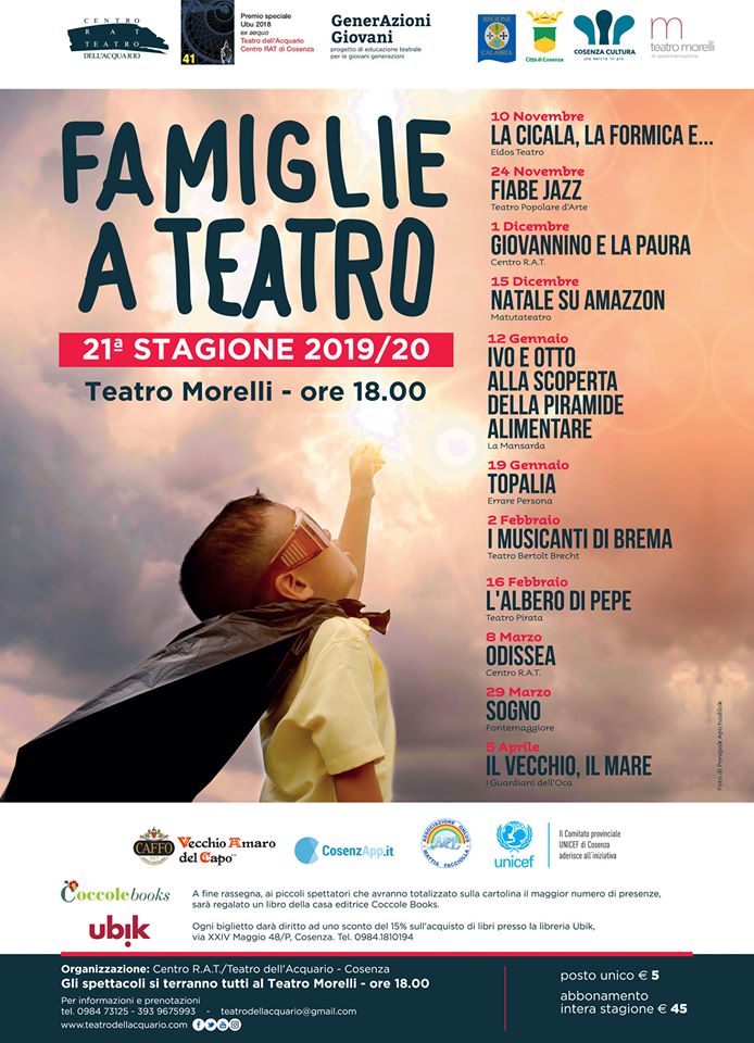 Al via la 21 Edizione della rassegna “Famiglie e Teatro”. Qui il programma