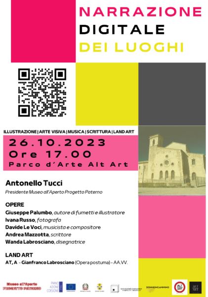 “L’ Associazione Progetto Paterno, curatrice del Museo all’Aperto accreditato dal Ministero della Cultura e riconosciuto dal Sistema Museale Nazionale, presenterà al pubblico le opere artistiche realizzate nell’ambito del progetto Narrazione digitale dei luoghi.