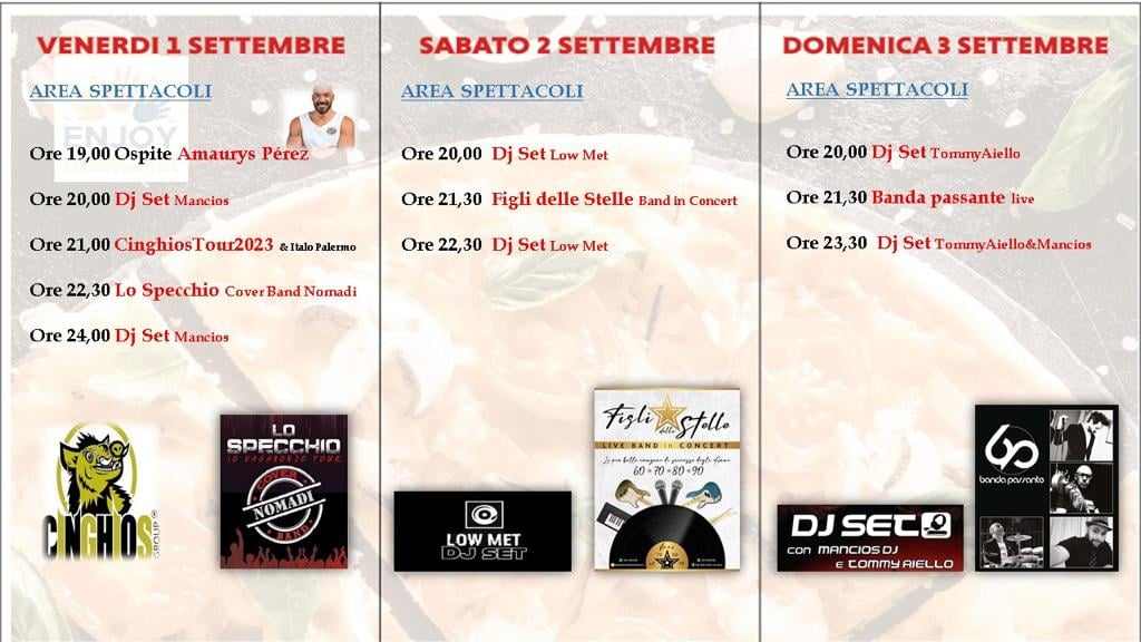 L’ultima serata del Festival sarà all’insegna della musica e dell’energia. Gli spettacoli prenderanno il via con il DJ Set di Tommy Aiello, seguito dalla coinvolgente esibizione della Banda Passante Live.