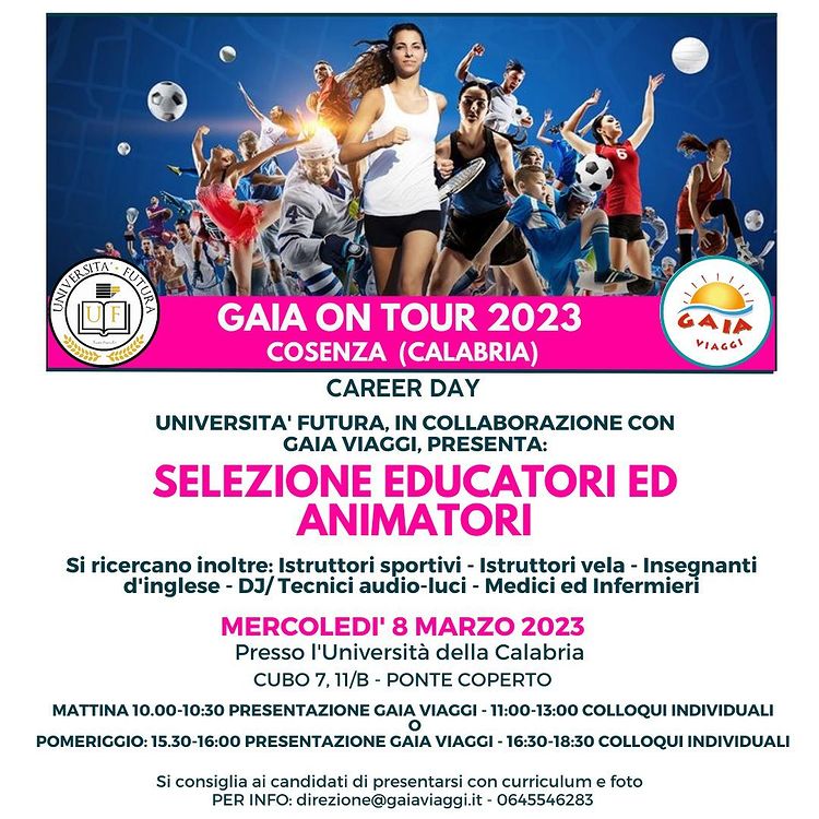 “Università futura, in collaborazione con Gaia Viaggi, seleziona: educatori ed animatori.