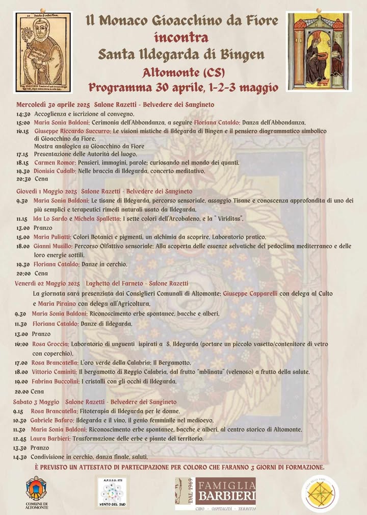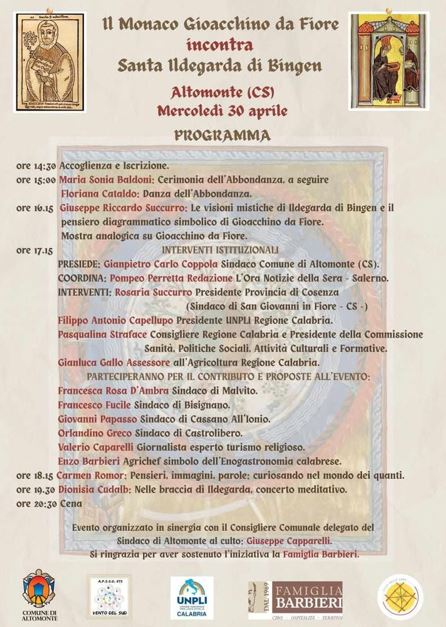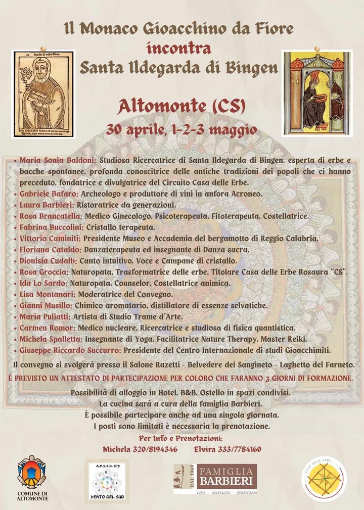Le giornate di studio avranno termine sabato 3 maggio nel primo pomeriggio. Come moderatrice del convegno, non posso che darvi appuntamento ad Altomonte per incontrare Gioacchino e Ildegarda.