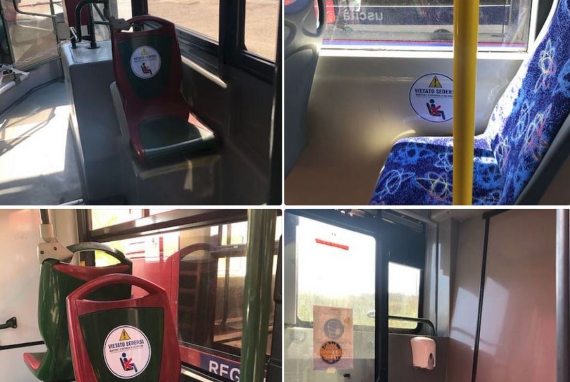 Su ogni autobus sono stati installati dispenser con gel igienizzante a disposizione degli utenti.