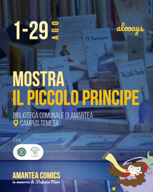 Tra gli appuntamenti che anticipano l’ottava edizione di Amantea Comics in memoria di Stefania Mari, è stata inaugurata la mostra dedicata a Il Piccolo Principe, con oltre 80 edizioni provenienti dall’Italia e dal mondo.