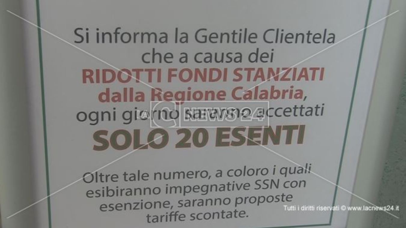 “Da alcune settimane i laboratori di analisi della provincia di Cosenza hanno iniziato a limitare le prestazioni giornaliere erogate a beneficio dei soggetti esenti dal pagamento di ticket.