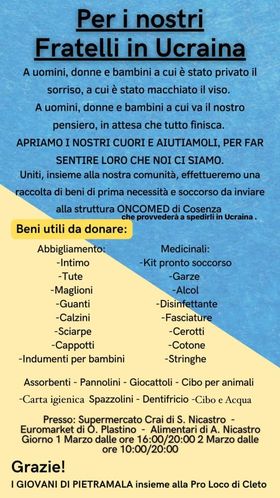 Cleto, un bellissimo borgo della provincia di Cosenza, si è attivato per far avere degli aiuti agli Ucraini