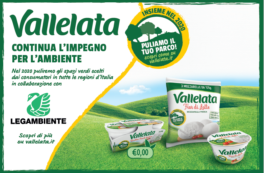 Vallelata, storico marchio che offre ogni giorno da 30 anni formaggi di pura bontà, ha deciso di promuovere il progetto green “Puliamo il tuo parco!” che vede il coinvolgimento in prima persona dei propri consumatori.