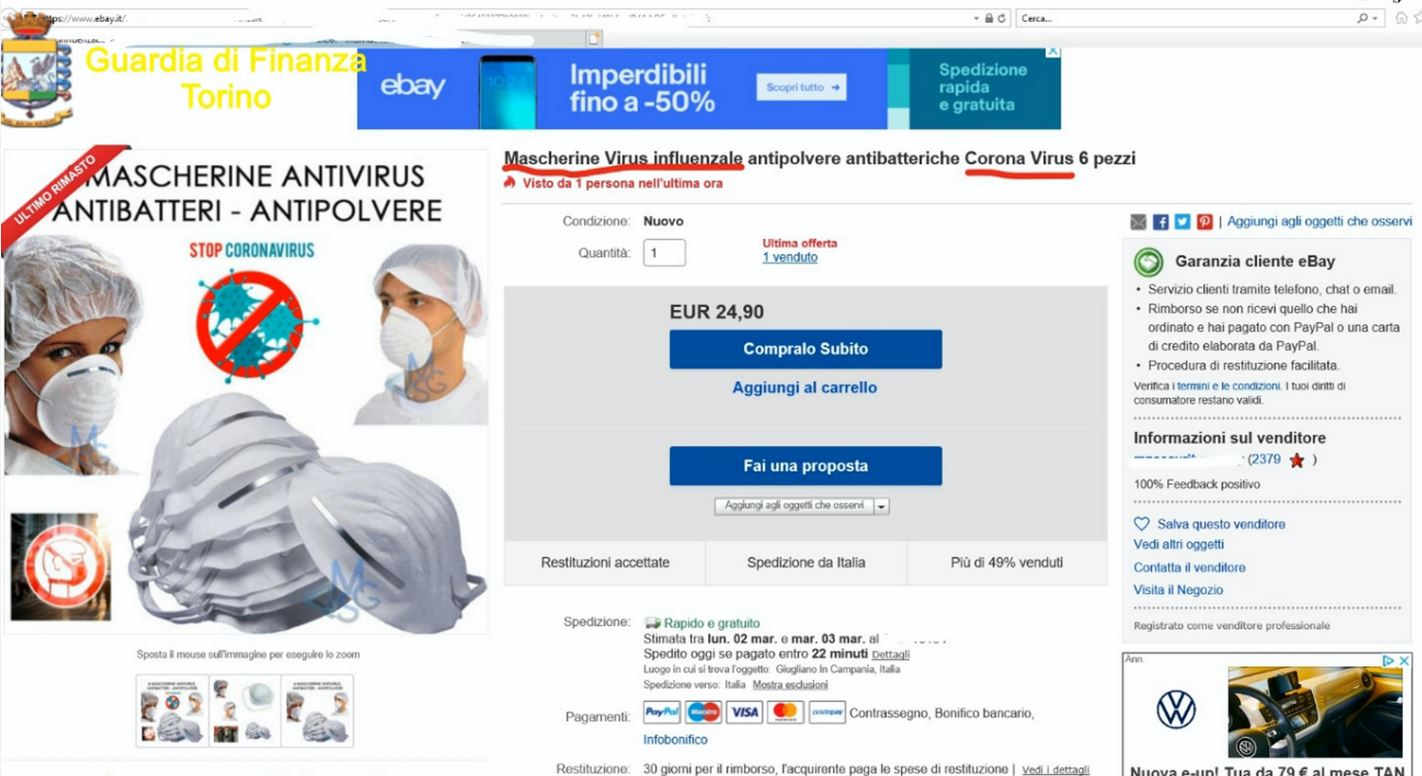 “Un vero e proprio “Coronavirus Shop”, almeno questa è la denominazione riportata in uno dei tanti siti individuati dalla guardia di finanza di Torino che sta proseguendo le indagini dopo la maxi operazione”