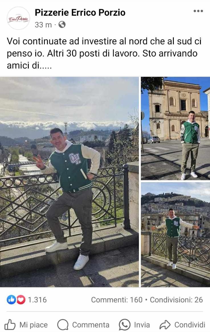 Aprirà a maggio su Viale Giacomo Mancini una “Pizzeria Errico Porzio” del pizzaiolo partenopeo che conta oltre 1,5 milioni di Follower sui social.