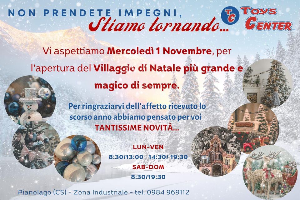 Vi aspettiamo nella zona industriale a Piano Lago, Mangone, presso il Toys Center.”