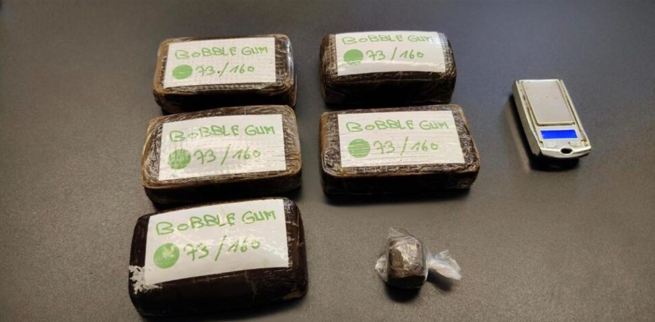 “L’uomo, a seguito di perquisizione domiciliare, è stato trovato in possesso di cinque panetti di hashish recanti la scritta “Bobble Gum” per un peso complessivo di 491 grammi, oltre ad un bilancino elettronico idoneo per la pesatura “di precisione”.”