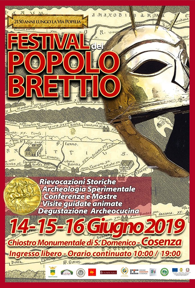 “La città di Cosenza ospiterà dal 14 al 16 giugno, nel Chiostro di San Domenico, un importante evento di rievocazione storica sul popolo Brettio. Per l’occasione il Chiostro si trasformerà, grazie ad apposite scenografie, in un villaggio brettio e in un accampamento romano. L’iniziativa è promossa dall’Associazione “La via Popilia” di cui è Presidente Ferdinando Morelli, con il patrocinio del Comune di Cosenza. Le principali attività del Festival del popolo Brettio, accreditato nell’ambito delle Giornate nazionali dell’archeologia 2019, riguarderanno l’archeologia sperimentale, la cerimonia del Fuoco brettio, gli spettacoli di danza dell’antica Roma, i combattimenti tra guerrieri brettii ed esercito romano. Previste, inoltre, delle degustazione di archeocucina ed anche delle visite guidate animate presso il Museo dei Brettii e degli Enotri e presso il Museo Consentia Itinera. Sarà allestita anche una mostra con dei pannelli illustrativi sui Brettii e sui Romani. Gli spettacoli rievocativi saranno allestiti dalle Associazioni calabresi “La Via Popilia”, “I Brettii” e Legio X Fretensis, dall’Associazione siciliana “Antico Mondo” e dall’Associazione veneta “De Bello Italico”, insieme ad altri gruppi di rievocatori provenienti da varie regioni d’Italia. “Abbiamo inteso patrocinare il Festival del Popolo Brettio – sottolinea l’Assessore al turismo e al marketing territoriale Rosaria Succurro – perché riteniamo si tratti di una significativa manifestazione in grado di movimentare, attraverso la puntuale rievocazione di momenti storici che hanno riguardato la nostra città, flussi turistici provenienti da altri centri e da altre regioni e interessati a conoscere la città di Cosenza con i suoi giacimenti culturali e le sue risorse anche immateriali”. Il programma del Festival prevede, inoltre, due interessanti conferenze: la prima dal titolo “In viaggio sulla consolare Annia Popilia, al bivio della Città Brettia, tra Crati e Busento”, in programma sabato 15 giugno, alle ore 15,00 e che vedrà tra i relatori l’Ing. Francesco De Filippis, l’Arch. Fulvio Terzi e il Prof. Gian Piero Givigliano dell’Università della Calabria; la seconda, dal titolo “La cultura alimentare del Popolo Brettio”, in programma domenica 16 Giugno alle ore 10,30 e che avrà tra i relatori l’agronomo Mario Reda, la Direttrice del Museo dei Brettii e degli Enotri, Maria Cerzoso, Francesco Bafaro, Archeologo del Vino Acroneo e l’archeologo e rievocatore storico Corrado Re. L’iniziativa è ad ingresso libero.”
