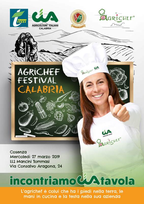 “Il prossimo 27 marzo approda a Cosenza, in Calabria, il Festival nazionale degli Agrichef, l’evento di Turismo Verde, l’associazione agrituristica di Cia-Agricoltori Italiani, ideato per promuovere e valorizzare i piatti tipici regionali attraverso la collaborazione con gli Istituti alberghieri e a indirizzo enogastronomico.”