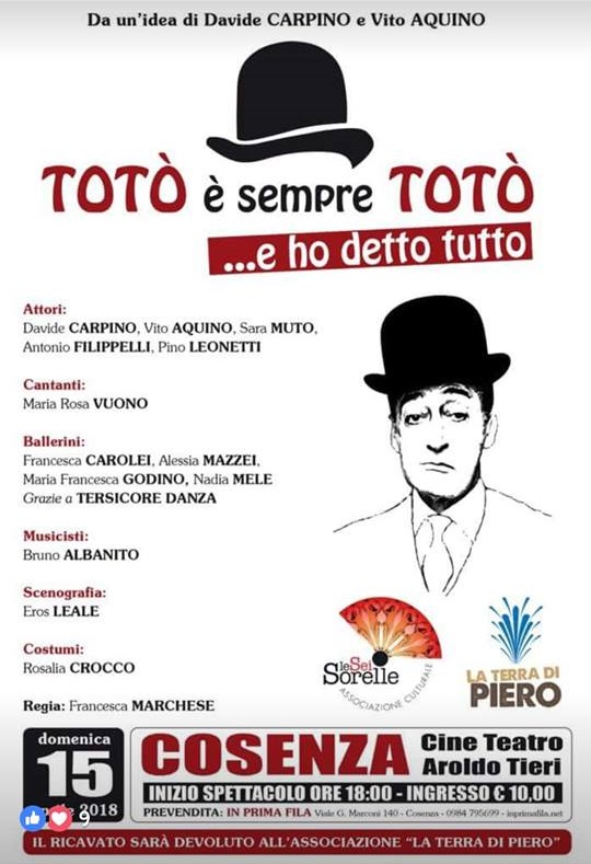 Il 15 aprile in occasione del ‘51 anniversario della morte di Totò, alle ore 18 Vi aspettiamo al Teatro presso il Cine Teatro Aroldo Tieri ( ex Cinema Italia).