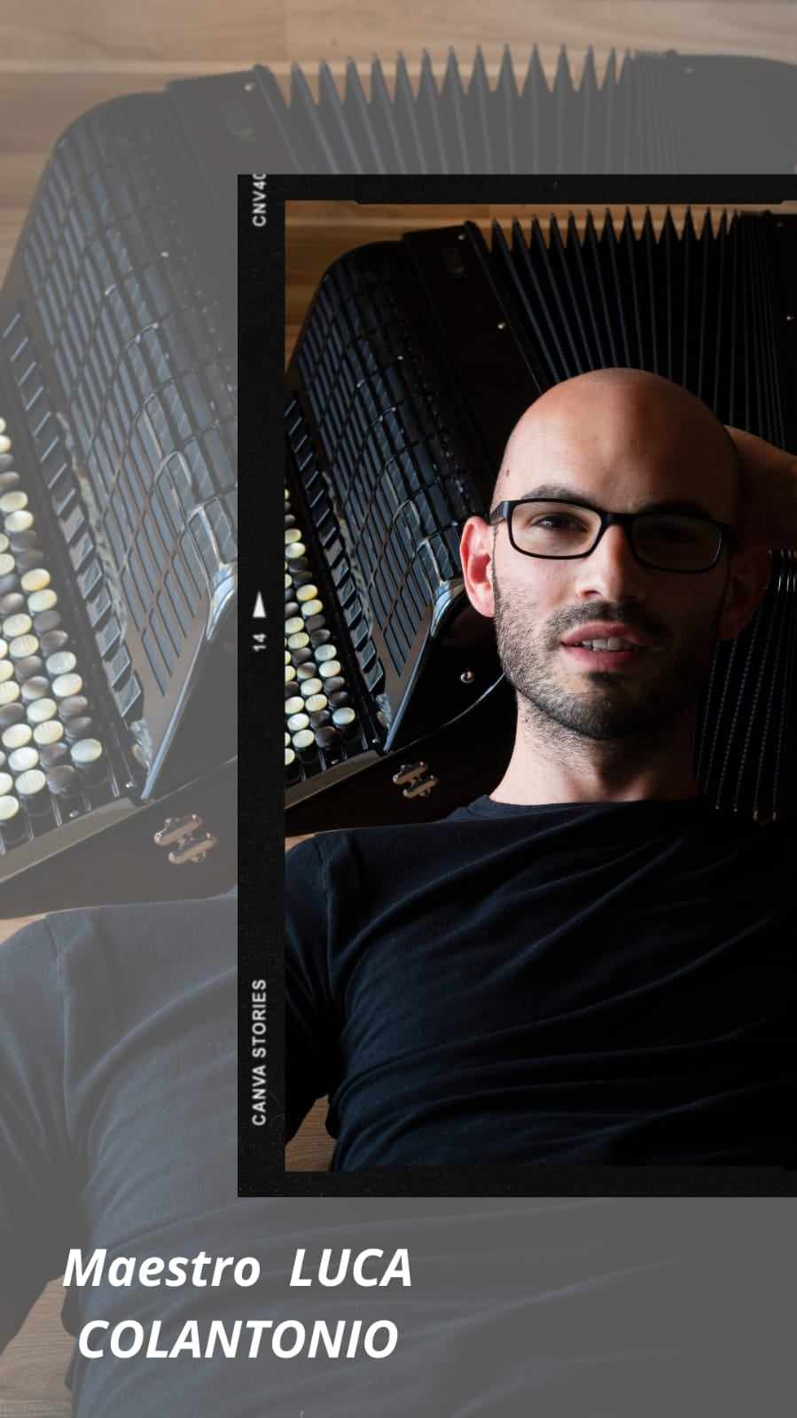 «Luca Colantonio, classe 1988, intraprende all’età di 11 anni lo studio della fisarmonica con Mario Stefano Pietrodarchi e, sotto la sua guida, consegue il diploma con lode e menzione d’onore presso il Conservatorio “F. Torrefranca” di Vibo Valentia nel 2013.