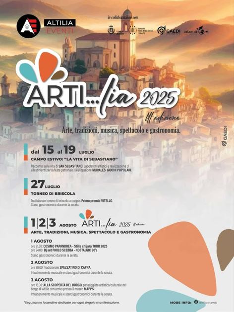 Sotto lo slogan “Il borgo di tutti. Il borgo al centro”, Arti…lia 2025 promette di regalare momenti indimenticabili in uno scenario suggestivo, dove l’identità locale incontra la voglia di stare insieme.