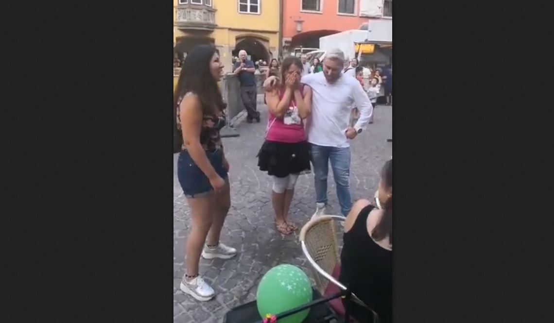 In una piazza gremita di turisti, nella splendida Innsbruck, mette in scena un duetto strappalacrime con l’amica Valentina Bonaccorso di Palermo, per omaggiare una sposa che si trovava lì in occasione del suo addio al nubilato.