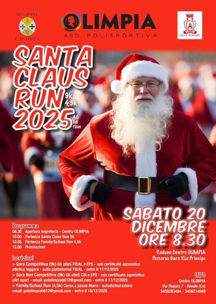 Un appuntamento davvero speciale quello che i podisti vivranno sabato prossimo a Rende, con la Santa Claus Run 2025