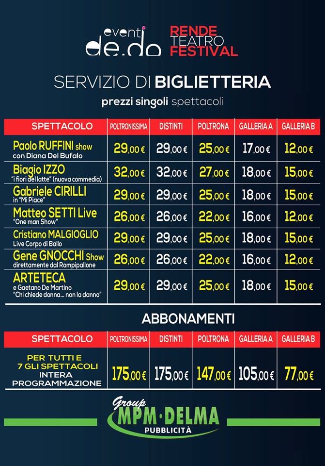 Il 30 novembre, giorno in cui inizia il Rende Teatro Festival, ci si diverte con uno show unico nel suo genere, quindi non puoi proprio mancare!