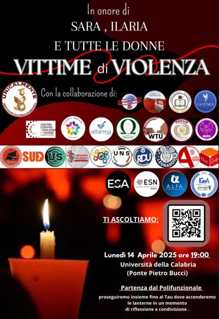 La fiaccolata contro la violenza sulle donne si terrà presso l’Università della Calabria il 14 Aprile 2025 alle ore 19:00 presso il Polifunzionale