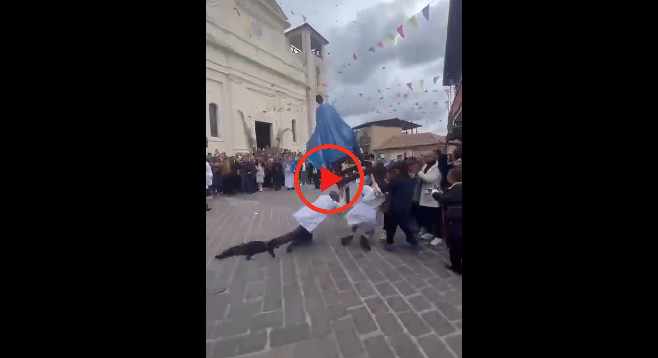 San Calogero, scivolano i portatori e cade la statua della Madonna durante la tradizionale “Affruntata” di Pasqua
