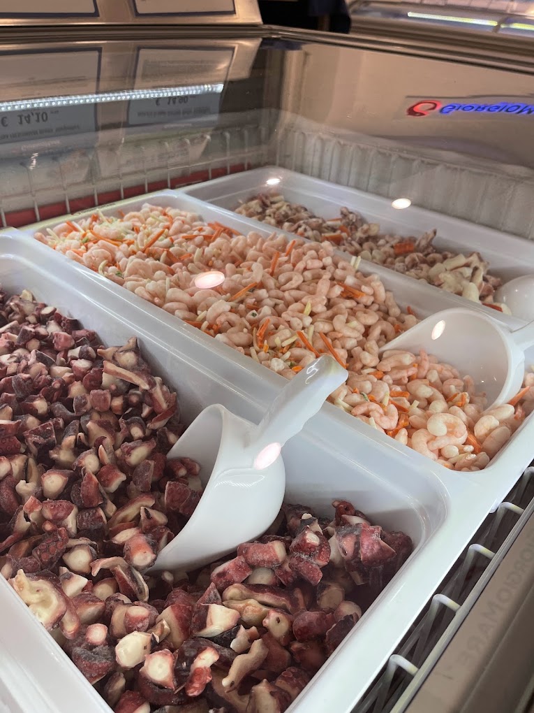 All’interno del punto vendita di Quattromiglia, oltre ai prodotti ittici, è presente un’ampia e variegata selezione di panati, verdure, carne, dolci, gelati e prodotti da forno, congelati e non, ma anche pasta, passate di pomodoro, sughi pronti, vini, olio d’oliva e conserve, per permettere al consumatore una spesa completa.
