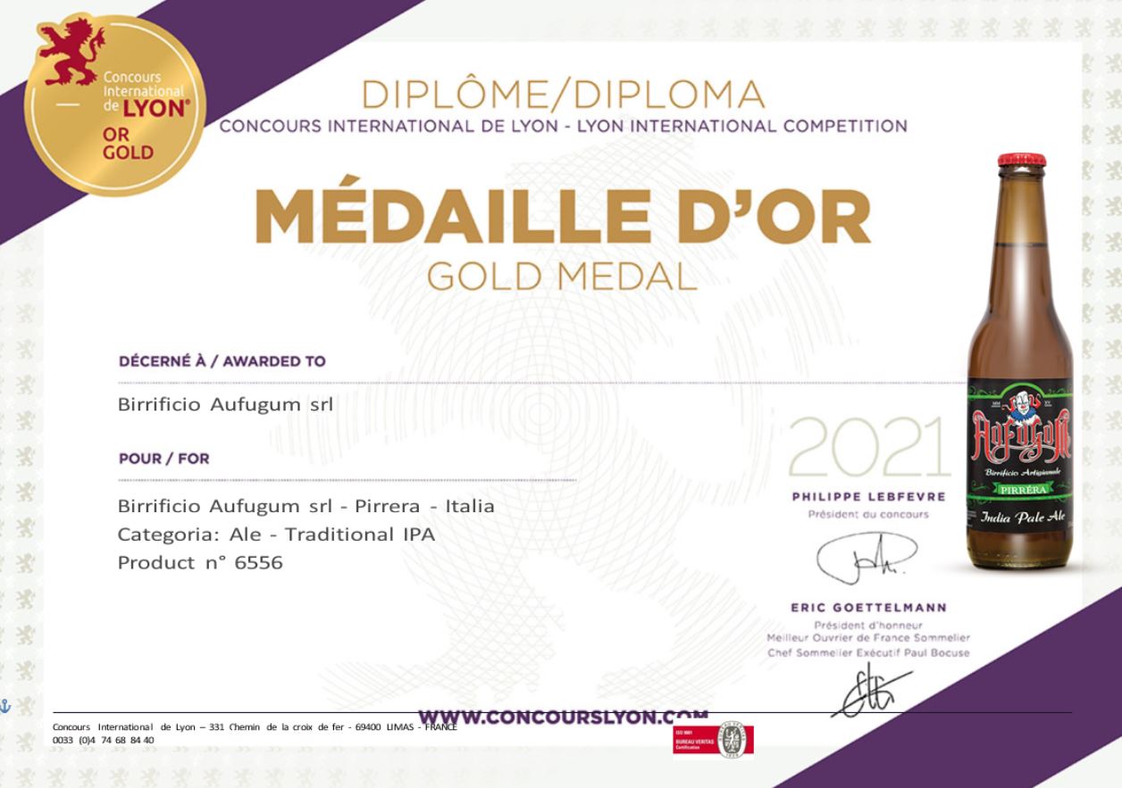 Nel “Concours International de Lyon”, un prestigioso concorso internazionale suddiviso in 3 categorie: vini, birre e liquori, nel quale hanno partecipato 1632 birre da tutto il mondo, suddivise in categorie (famiglie di birra), la squadra cosentina ha sbaragliato la concorrenza nella categoria Ale – International IPA.