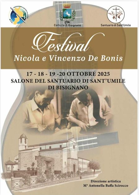 Dal 17 al 20 ottobre 2025, il Santuario di Sant’Umile di Bisignano diventerà il cuore pulsante della chitarra classica con il Festival Nicola e Vincenzo De Bonis, promosso dall’Associazione Flautisti Calabresi, presieduta da Francesco Guido, e con la direzione artistica della M° Antonella Baffa Scirocco