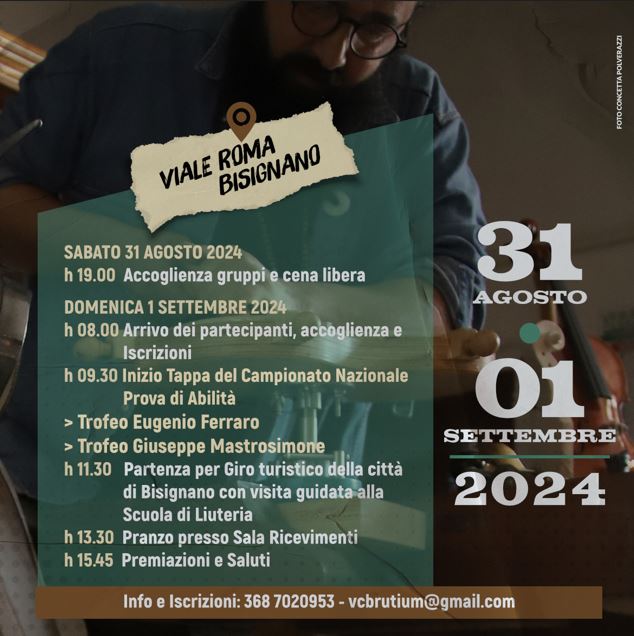 Il programma, pensato dagli organizzatori in ogni dettaglio, sarà anche una grande cassa di risonanza per la cultura e l’arte della città di Bisignano. Ci saranno, infatti, momenti in cui verranno mostrati agli appassionati della Vespa – tra di loro ci sarà anche un gruppo proveniente dalla Germania – le bellezze artistiche e storiche di Bisignano ed è prevista anche una visita alla scuola dove oggi si insegna alle nuove generazioni il mestiere del liutaio. L’arte della liuteria è, invero, riconosciuta come eccellenza della città.