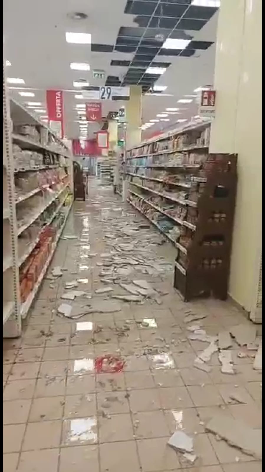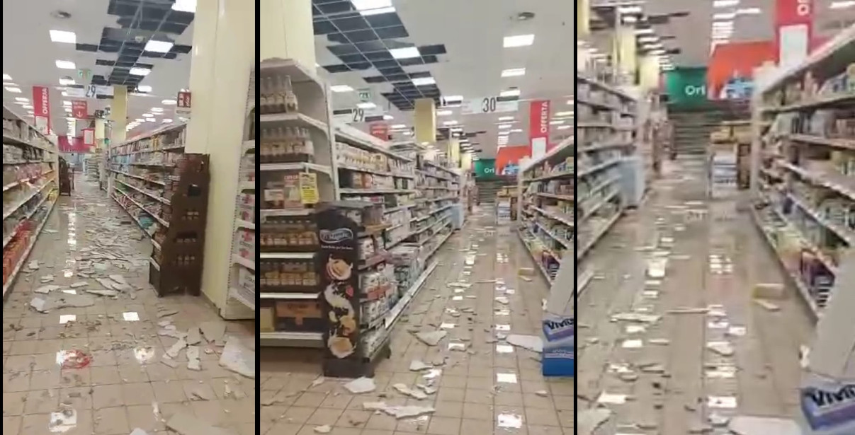 All’interno del supermercato sono cadute parti del controsoffitto