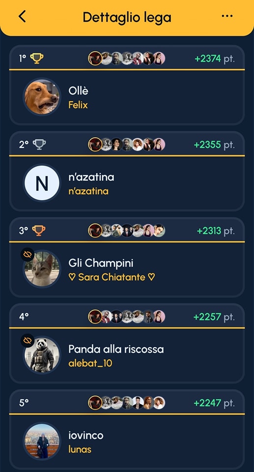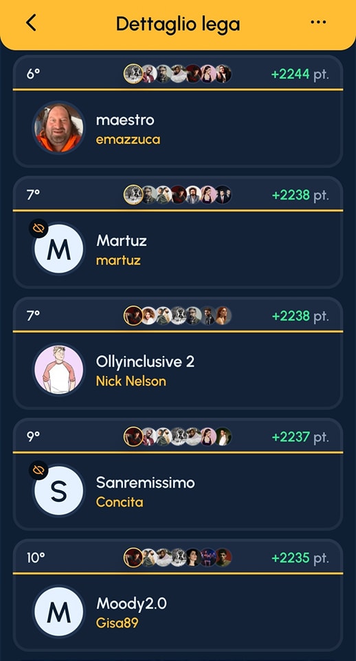 9° Classificato: “Sanremissimo” con 2237 punti – Siamo ancora in attesa di essere contattati dal giocatore “Concita”