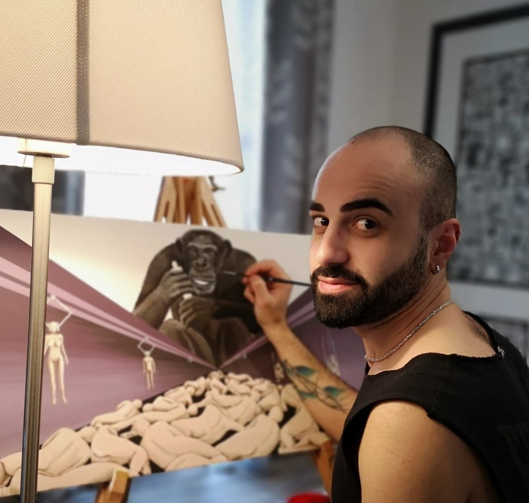 Angelo si diverte nel mettersi alla prova, testando le sue capacità, esplorando tra gli stili e le tecniche che più sente alla sua portata avvicinandosi sempre più ad una forma di surrealismo contemporaneo in maniera autodidatta.