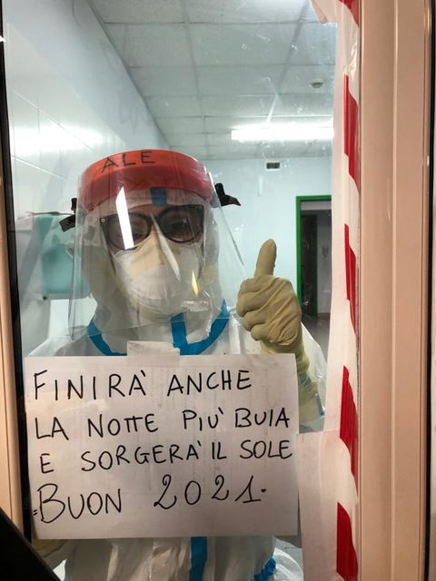Una dei nostri eroi del Reparto Covid dell’ospedale Annunziata di Cosenza. Stamani vedendo questa foto ho avuto un groppo in gola. Ma ho anche sentito nel cuore tanta tanta speranza e forza.