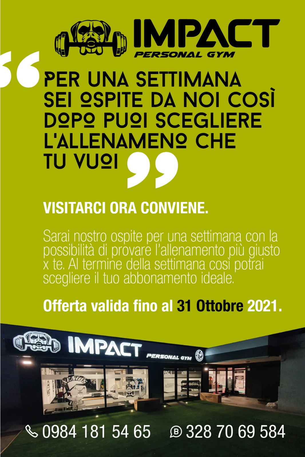 Ha aperto a Rende, in Via Salvador Allende 28 (alle spalle del bar Dolci e Capricci, sotto gli uffici delle vecchie Poste) il nuovo centro sportivo “Impact”, dedicato al personal training, allenamento funzionale, crosstrainig, arti marziali, pesistica olimpica, powerlifting, yoga, pilates e preparazione atletica.