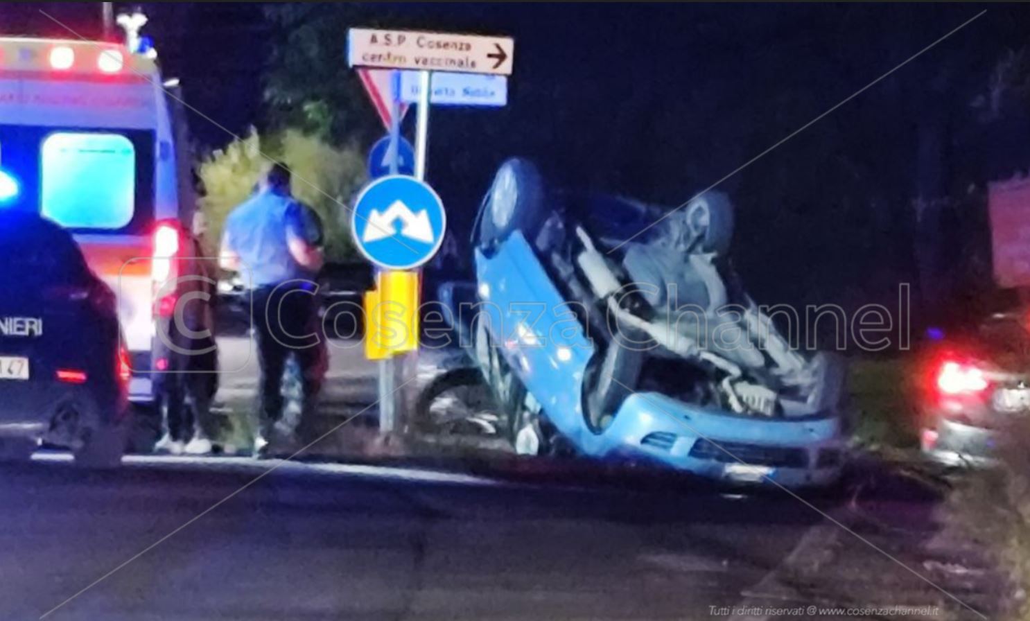 “Un grave incidente si è verificato intorno alle 22:15 di questa sera a Rende, precisamente in zona Quattromiglia, nei pressi dell’incrocio che conduce a Montalto Uffugo. Coinvolte nello scontro due autovetture, una delle quali si è ribaltata in seguito all’impatto.”