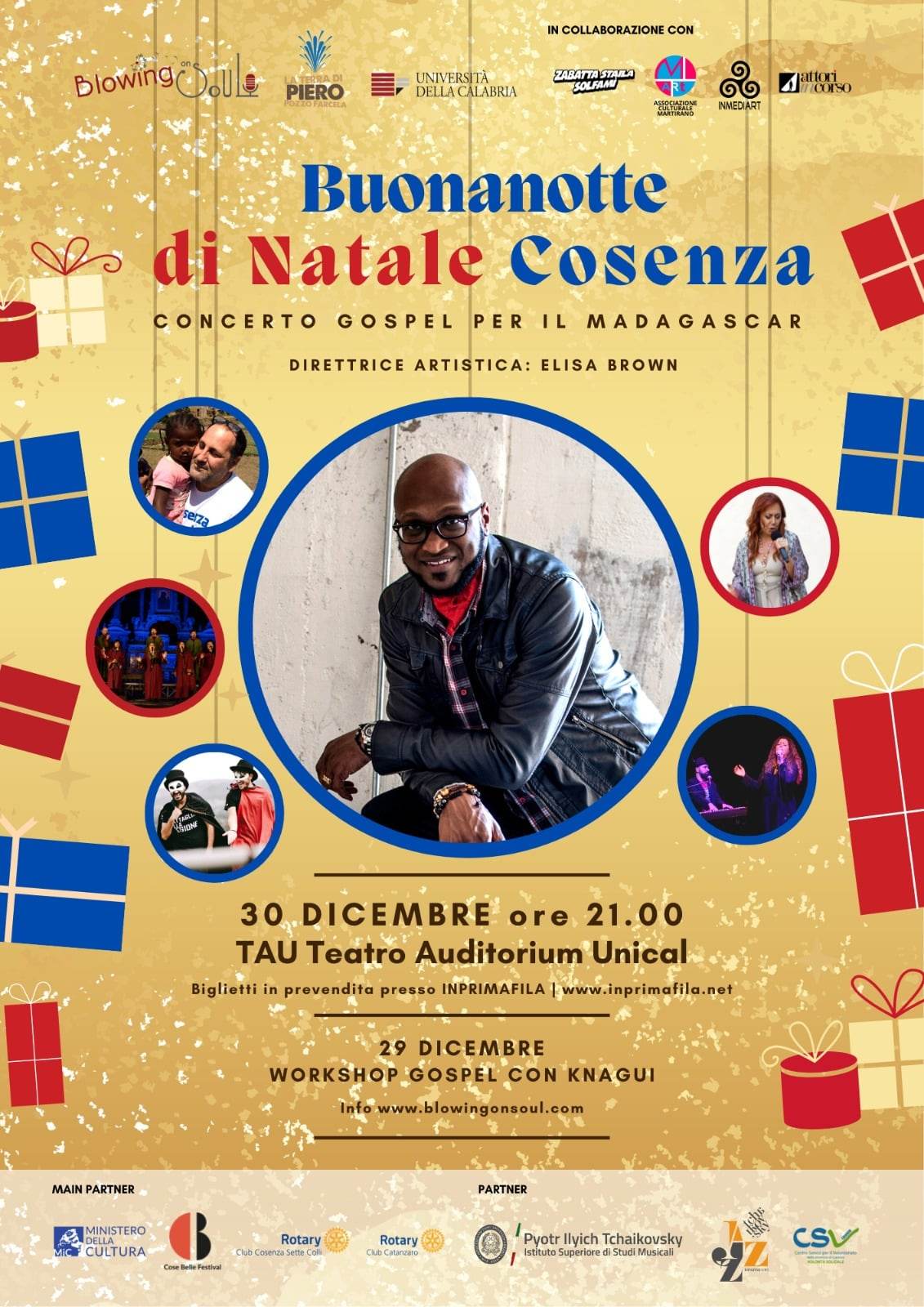L’ Associazione Blowing on Soul APS in collaborazione con la Terra di Piero e con l’Università della Calabria presenta il Blowing on Soul Gospel Meeting – Cosenza Edition 2022 con il concerto di Natale “BUONANOTTE DI NATALE COSENZA – concerto Gospel per il Madagascar” con la Direzione Artistica di Elisa Brown.