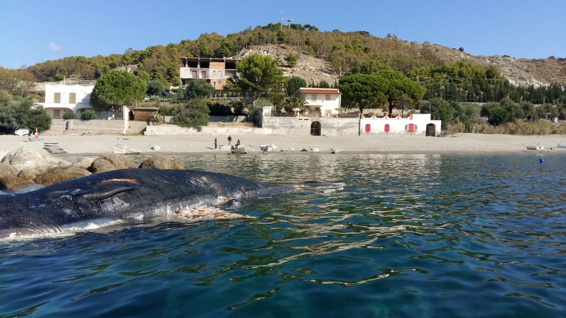 “Il cadavere di un cetaceo, presumibilmente un capodoglio, di circa 12 metri si è arenato questa mattina all’ingresso della baia di Spropoli, piccola frazione di Palizzi, sulla costa jonica reggina. L’animale, vicinissimo alla riva, presenta una larga ferita sull’addome e sembra morto da giorni per cause ancora in via di definizione.”