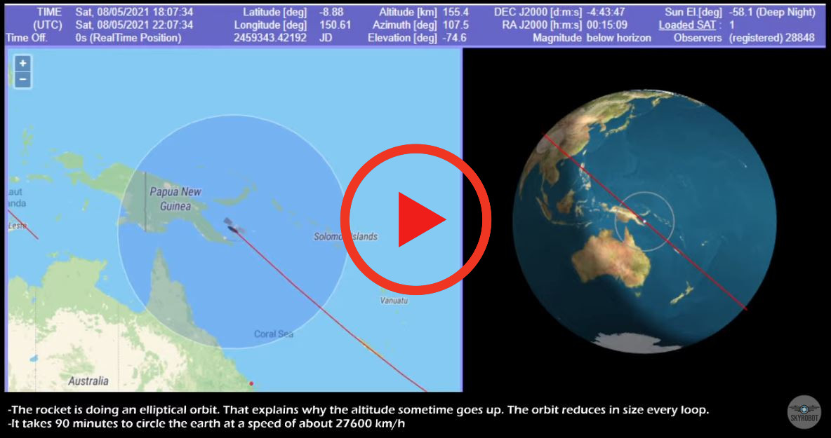 Scendono quindi a due le traiettorie che potrebbero interessare alcuni settori di nove regioni centro-meridionali italiane nell’arco temporale compreso tra le 2:00 di questa notte e le 07:00 del mattino ora italiana. Il tavolo tecnico continuerà a seguire l’evolversi della situazione in tempo reale. La probabilità che uno o più frammenti possano cadere sul nostro territorio rimane estremamente bassa.”