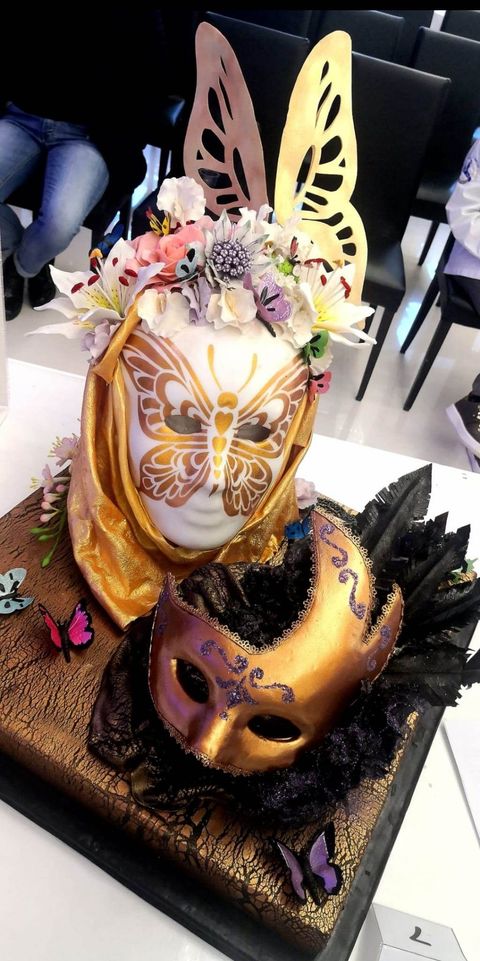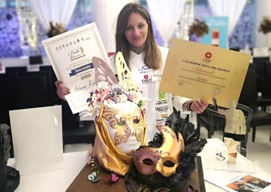 “Già all’attenzione degli operatori del settore per la partecipazione ad altri eventi, la cake designer rendese ha conquistato la giuria, presieduta da Rosana Madalina Voicescu e composta da Maria Pia Cognetti e Viviana Pellegrino, con la sua opera ” Due MASCHERE UN VOLTO”, che ha destato l’ammirazione e ricevuto i complimenti del presidente della ACP BAT Michele Erriquez e della responsabile per il settore cake design Annalisa Stillavato, oltre che del pubblico e degli addetti ai lavori presenti alla manifestazione.