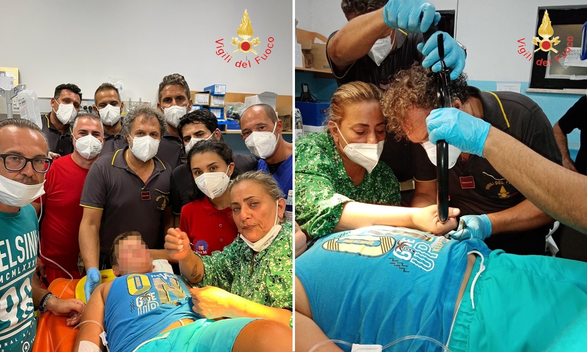 “I medici hanno richiesto aiuto per tagliare ed estrarre il manubrio e la manetta del freno conficcati nell’addome di un bambino a seguito di una caduta dalla bicicletta. I vigili del fuoco, in collaborazione e sotto la supervisione del personale medico, hanno provveduto a effettuare il piccolo intervento permettendo la rimozione del corpo estraneo.”