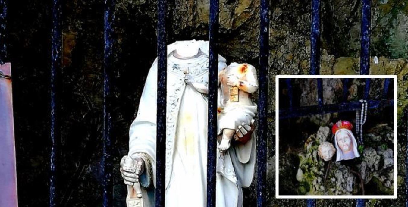 Le teste della Madonna e del Bambinello sono state segate e lasciate di fianco alla statua stessa.”