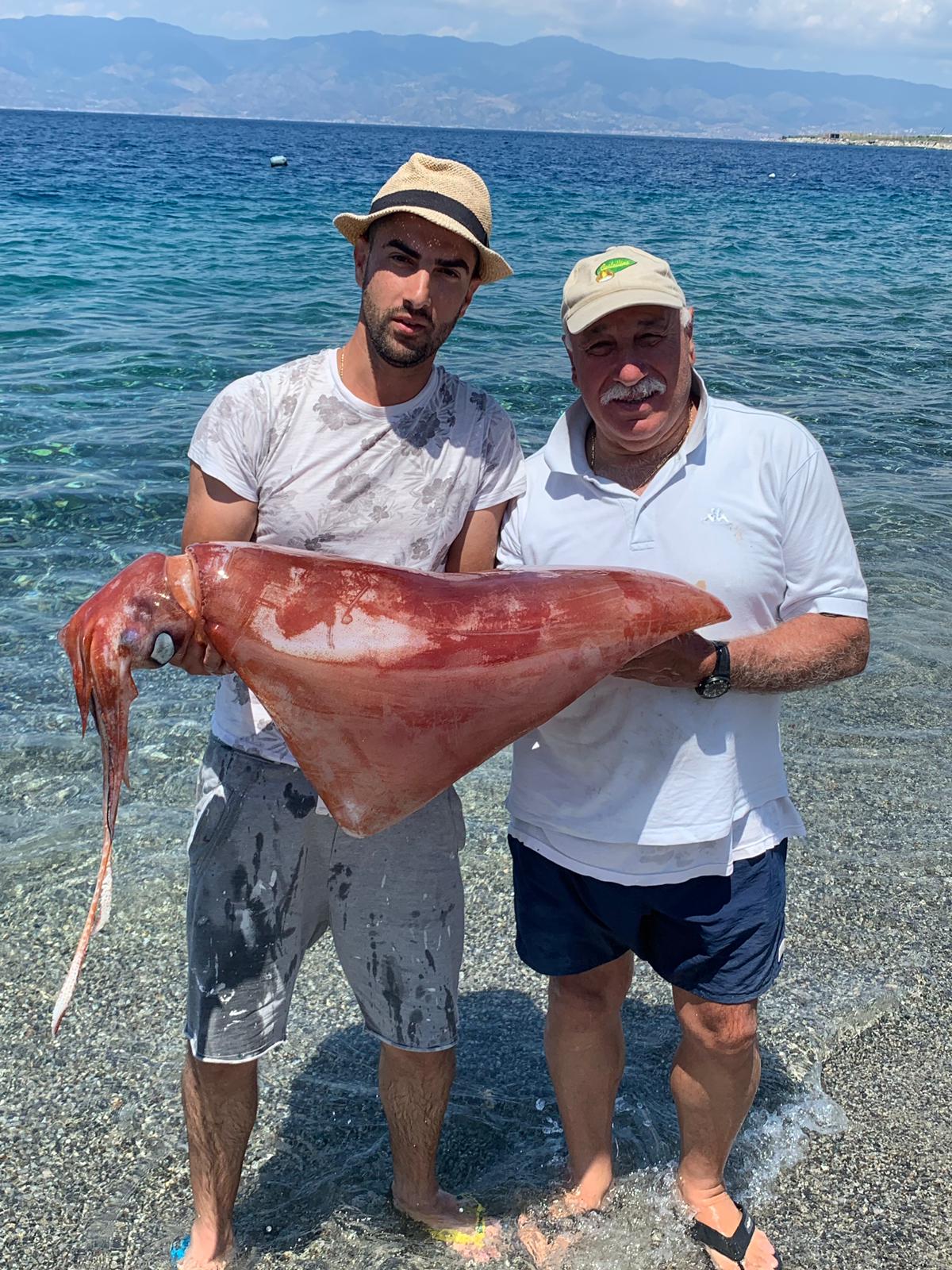 Giuseppe Aliquò e Cesare Bruciafreddo hanno pescato un calamaro gigante di 16 kg, lungo un metro