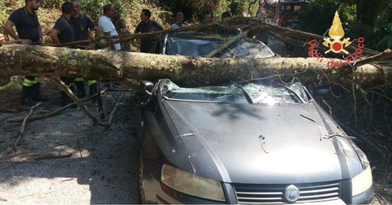 Calabria – Tragedia sfiorata a Lamezia, albero si spezza e si abbatte su un’auto