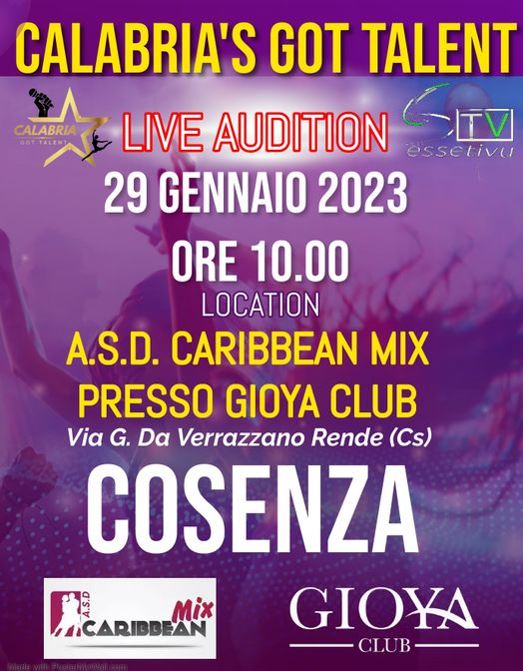 Dopo il successo avuto lo scorso 22 Gennaio a Crotone, ora tocca Cosenza presso il “ Gioya Club“, domenica 29 Gennaio 2023 alle ore 10.00 si apriranno le porte per le audizioni ufficiali per lo show televisivo “Calabria’s Got Talent” ideato dal giovane direttore artistico ed