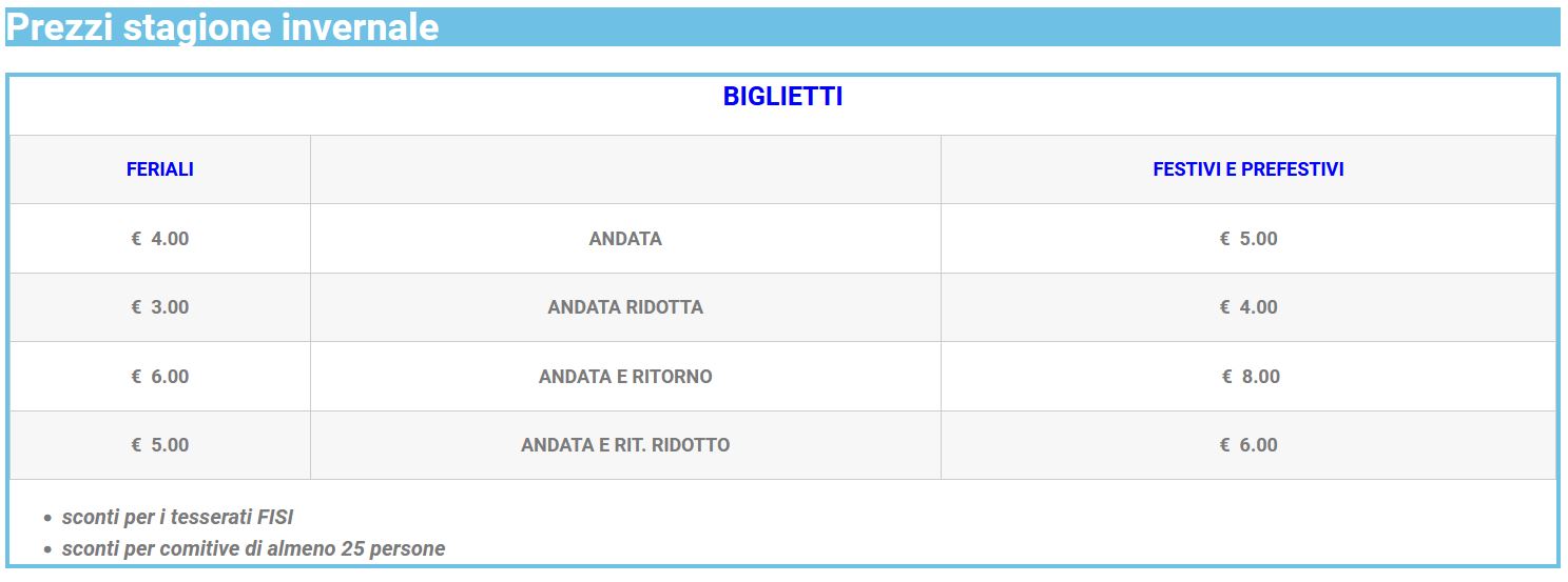 Apertura al pubblico della cabinovia alle ore 8.30, mentre l’ultima corsa in salita dal Tasso è prevista alle ore 16,10.