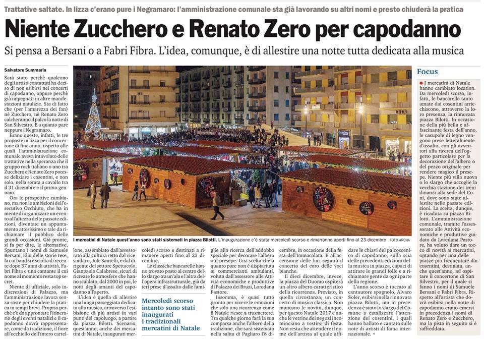“Trattative saltate. In lizza c’erano pure i Negramaro: l’amministrazione comunale sta gia lavorando su altri nomi e presto chiuderà la pratica”