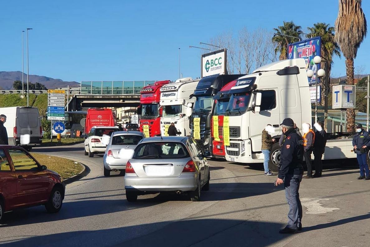Caro carburanti, tir parcheggiati allo svincolo dell’A2 di Rende