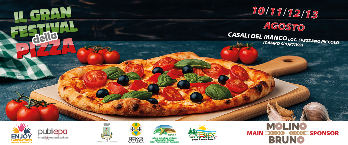 Tutto pronto per la terza edizione del Gran Festival della Pizza, in programma dal 10 al 13 agosto 2025 nel Campo Sportivo di Spezzano Piccolo, del comune di Casali del Manco