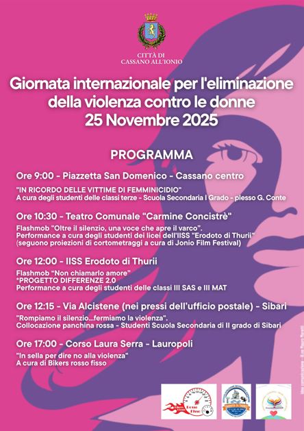 La Città di Cassano All’Ionio si prepara a commemorare la Giornata Internazionale per l’Eliminazione della Violenza contro le Donne, in programma martedì 25 novembre 2025